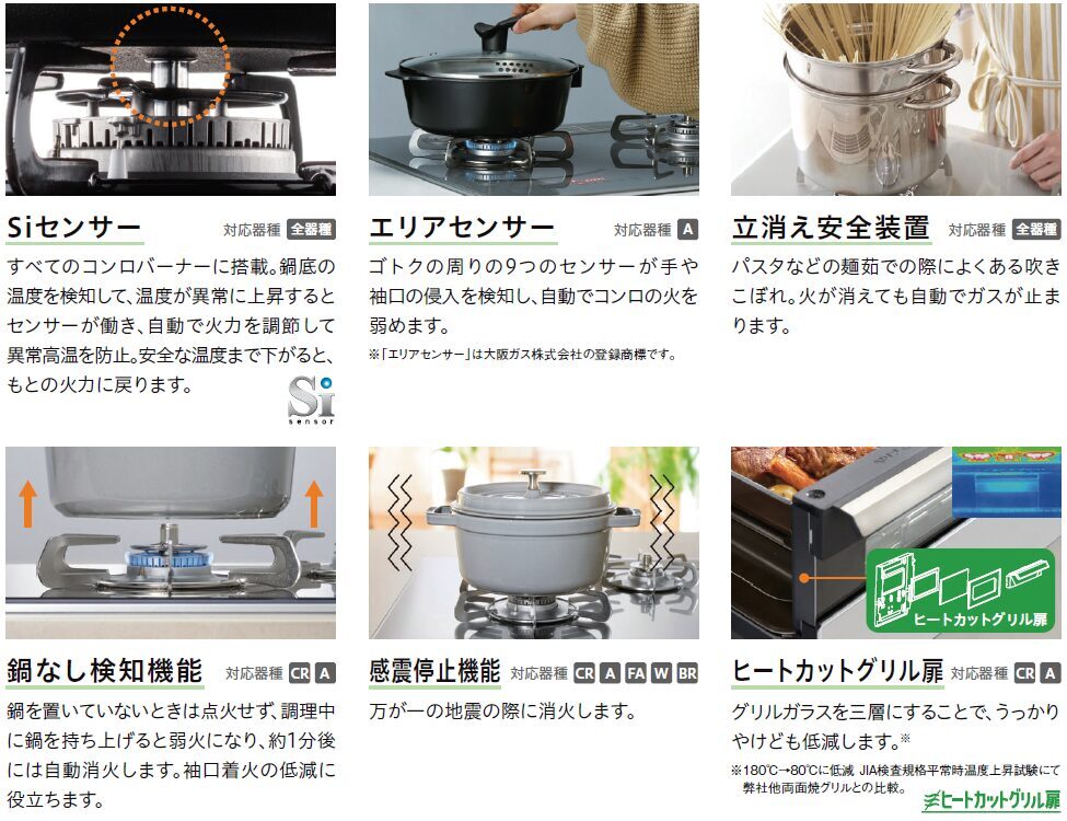 2008年(平成20年)10月より、家庭用ガスコンロについて、バーナー全口に安心センサー(Siセンサー)の搭載が義務づけられました。