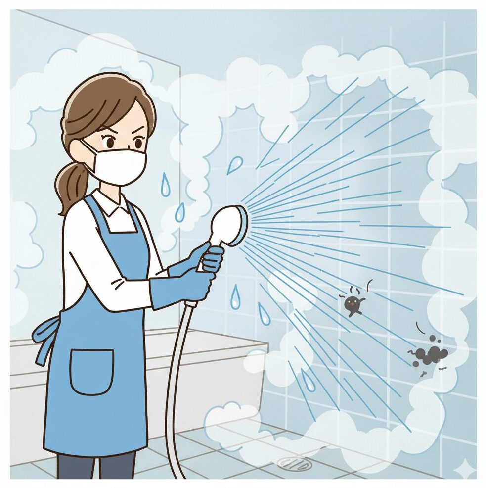 掃除の仕上げに、浴室全体に50℃以上の熱いシャワーを5秒ほどかけると、カビの元になる胞子が死滅しやすくなります。