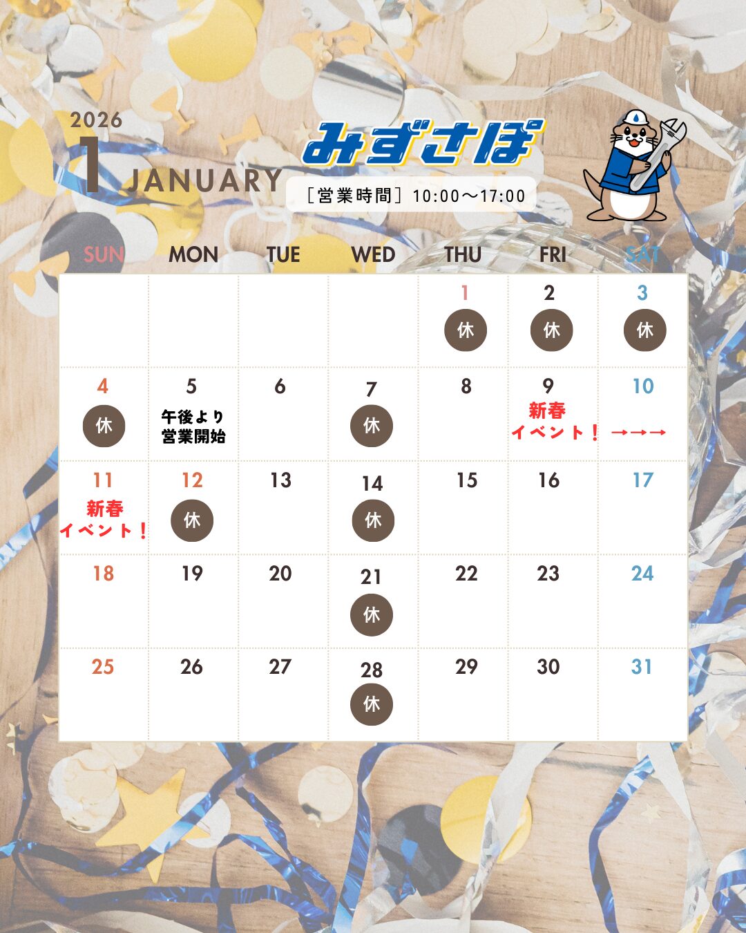 尚、みずさぽ年内の営業は明日12/27(金)までとさせていただきます。