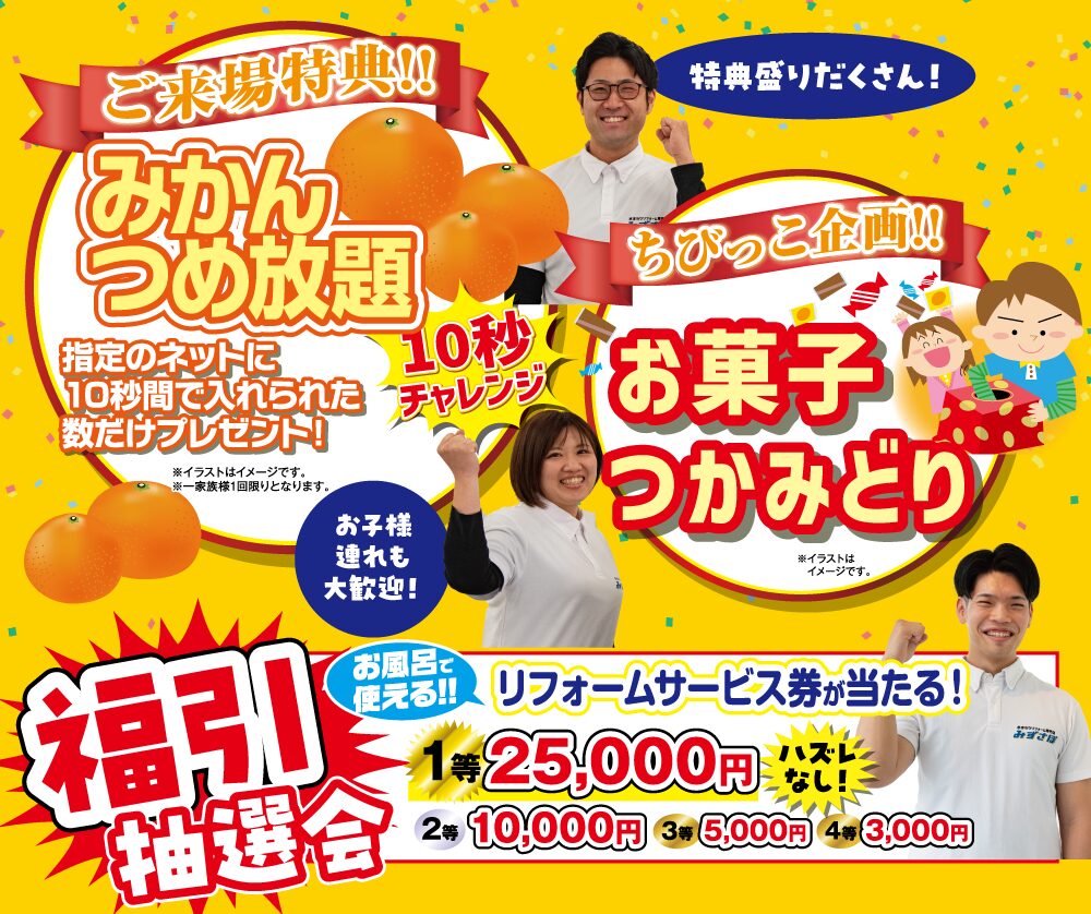 お風呂で使えるお得なリフォームサービス券が当たる福引抽選会も!