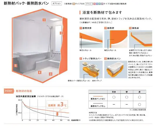 お風呂の寒さはユニットバスの断熱オプション と暖房 で解決!