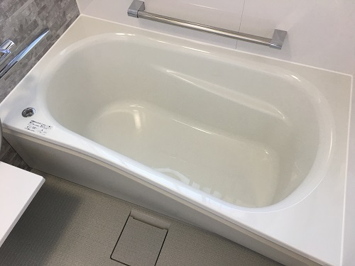 お風呂組立後です。きちんと養生をして仕上げ時まで傷がつかないようにします。