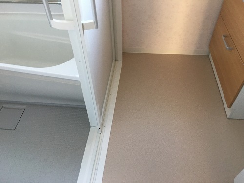 古くなった水まわりを一新したいとご相談いただきました。お風呂入り口におよそ7cmの段差があり、つまづく危険を感じておられました。