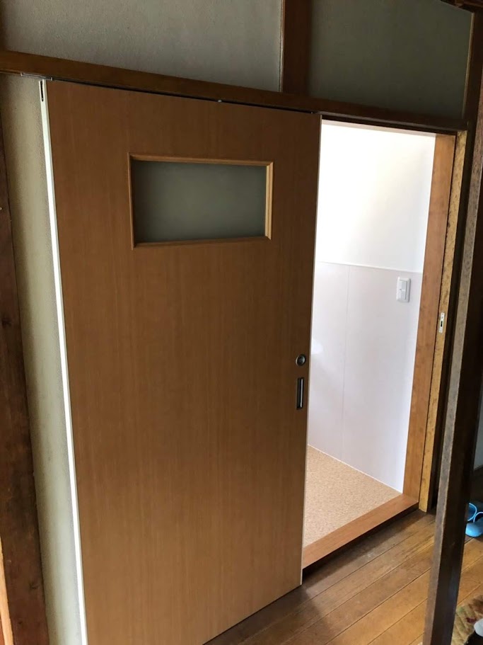 • 開き戸から片引戸に変更することで、トイレ内のデッドスペースがなくなり出入りがスムーズになりました。